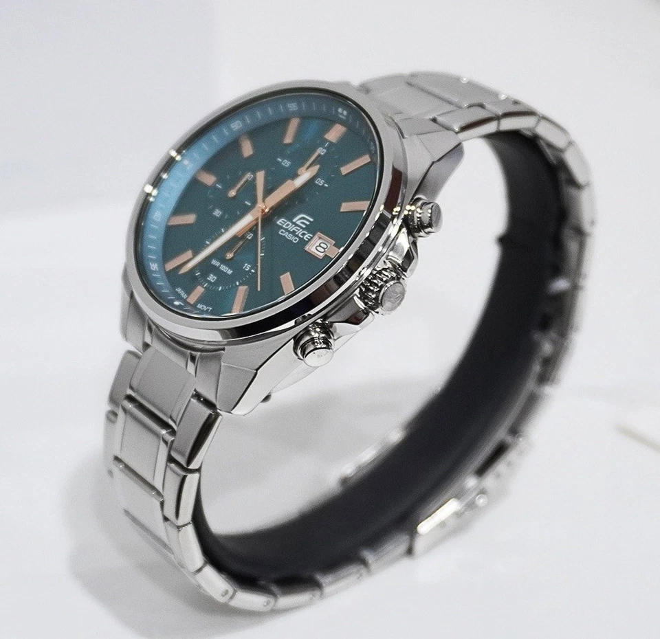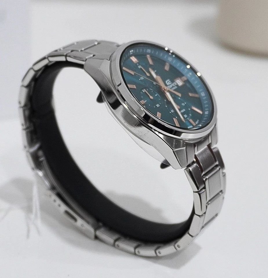 Elevate your everyday style with the Casio Edifice EFV-610DE-2AUDF, a modern and sporty men’s chronograph. This timepiece features a striking blue dial with a fine bezel, ensuring clear readability, and often includes subtle accents that enhance its refined look. Powered by a precise quartz movement, it offers a 1/10-second stopwatch and a convenient date display. Built with a durable stainless steel case and matching stainless steel bracelet, protected by mineral glass, and boasting 100m water resistance, it’s a versatile and reliable choice for both daily wear and active pursuits.