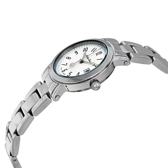 & Free ShippingStainless steel case with a stainless steel bracelet. Fixed stainless steel bezel. White dial with silver-tone hands and Arabic numeral hour markers. Minute markers around the outer rim. Dial Type: Analog. Date display at the 3 o’clock position. Ronda caliber 775 quartz movement. Scratch resistant mineral crystal. Pull / push crown. Solid case back. Round case shape. Case size: 28 mm. Case thickness: 3 mm. Deployment clasp. Water resistant at 30 meters / 100 feet. Functions: date, hour, minute, second. Casual watch style. Watch label: Swiss Made. Mathey-Tissot City White Dial Ladies Watch D31186MAG.