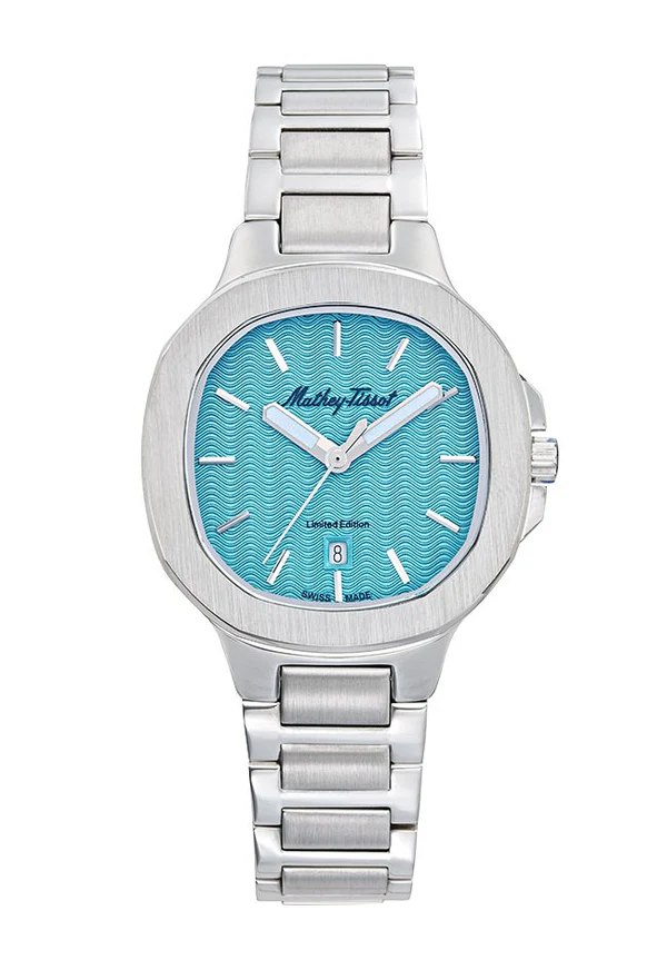 & Free ShippingThe Mathey-Tissot Evasion watch is a stunning piece featuring a stainless steel case and bracelet with a fixed silver-tone bezel. The 30 mm analog cushion-shaped dial displays silver-tone hands and index hour markers with luminescent hands for clear visibility. Positioned at the 6 o’clock position, the date display is easy to access. The watch boasts a scratch-resistant mineral crystal protecting the Ronda Caliber 585 H6 quartz movement. With water resistance up to 50 m, the watch offers date, hour, minute, and second functions.