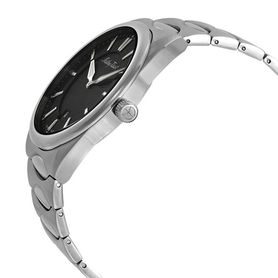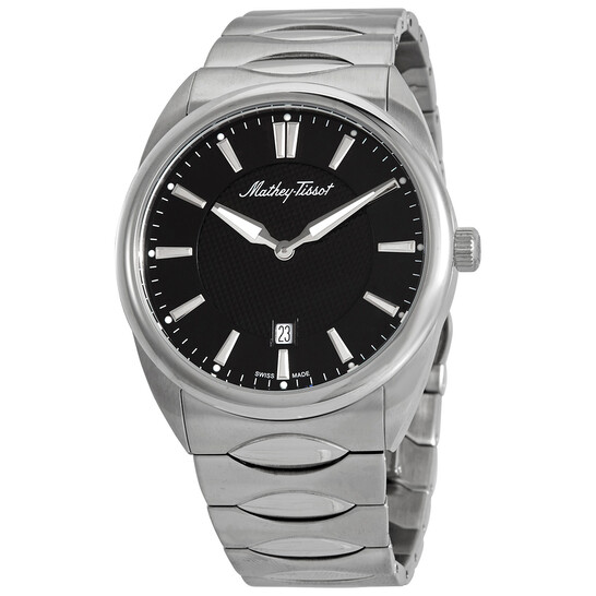 & Free ShippingStainless steel case with a stainless steel bracelet. Fixed stainless steel bezel. Black dial with luminous silver-tone hands and index hour markers. Minute markers around the outer rim. Dial Type: Analog. Luminescent hands and markers. Date display above the 6 o’clock position. Ronda caliber 714 quartz movement. Scratch resistant mineral crystal. Pull / push crown. Solid case back. Round case shape. Case size: 42 mm. Deployment clasp with a push button release. Water resistant at 50 meters / 165 feet. Functions: date, hour, minute, second. Anaconda Series. Casual watch style. Watch label: Swiss Made. Mathey-Tissot Anaconda Quartz Black Dial Men’s Watch H791AN.