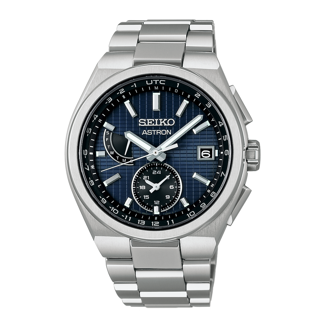 & Free ShippingSeiko Astron Nexter SBXY065 – men’s watch produced by Seiko. It has Japanese solar quartz movement and 8B63 calibre. Titanium, diamond shield case of round shape. Case dimensions are 41.3 mm. in diameter and 10.6 mm. in thickness. The dial of this Seiko watch is navy. Display type: analog. This timepiece has sapphire, super clear coating glass. Titanium band, band color: silver. 100 m. water resistance. The watch is from Astron collection. The following features are equipped: radio controlled, perpetual calendar, world time, dual time, date, day, antimagnetic, screw-down crown, glowing hands, glowing markers.
