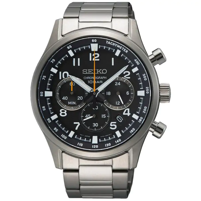 Slip on the Seiko Chronograph SSB447P1 and feel the power of precision on your wrist. The rich black dial with bold silver indices creates a sharp, commanding look, while the polished stainless steel strap wraps your wrist in enduring strength and timeless sophistication.