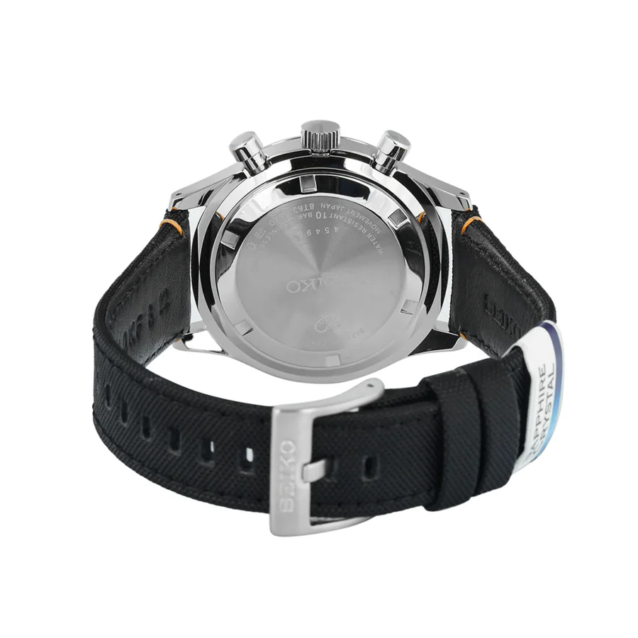 Slide on the Seiko SSB449P1 Chronograph, and you instantly feel a mix of rugged confidence and refined control. The black dial delivers bold readability with sharp contrast, while the nylon strap sits light yet tough on your wrist—perfect for long days, fast moves, or spontaneous adventures.