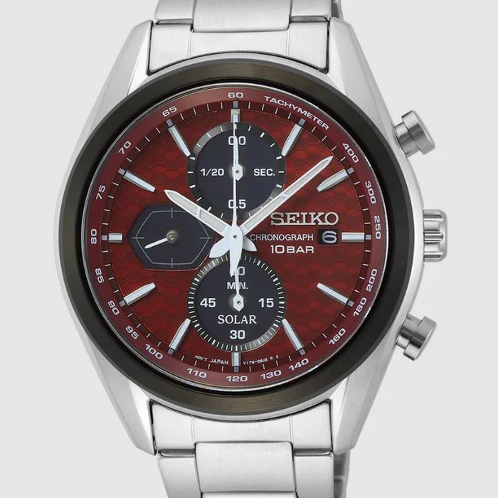 Crafted for the man who thrives on movement and momentum, the SSC771P1’s solar-powered chronograph ensures lasting energy without the need for battery swaps. The vibrant red dial reflects ambition and boldness—perfect for those who live life in the fast lane.