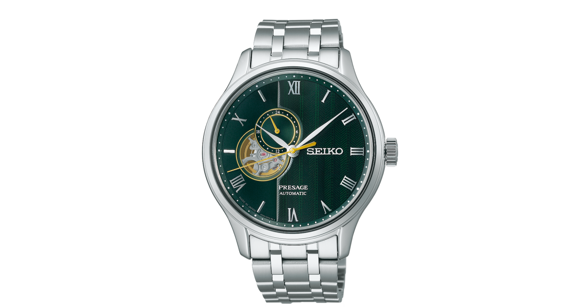 Seiko Presage Japanese Garden SARY237 – men’s watch produced by Seiko. It has Japanese automatic movement and 4R39 calibre. Stainless steel case of round shape. Case dimensions are 41.8 mm. in diameter and 12.5 mm. in thickness. The dial of this Seiko watch is green. Display type: analog. This timepiece has sapphire glass. Stainless steel band, band color: silver. 30 m. water resistance. The watch is from Seiko Presage collection. The following features are equipped: antimagnetic.