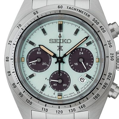 & Free ShippingSeiko Prospex Speedtimer SBDL129 – men’s watch produced by Seiko. It is equipped with Japanese solar quartz movement and V192 calibre. Stainless steel case of round shape. Case dimensions are 39 mm. in diameter and 13.3 mm. in thickness. The dial of this Seiko watch is light green. Display type: analog. This timepiece has sapphire, antireflection coating glass. Stainless steel band, band color: silver. 100 m. water resistance. The watch is from Seiko Prospex collection. The following features are equipped: chronograph, power reserve indicator, date, antimagnetic, glowing hands, glowing markers.