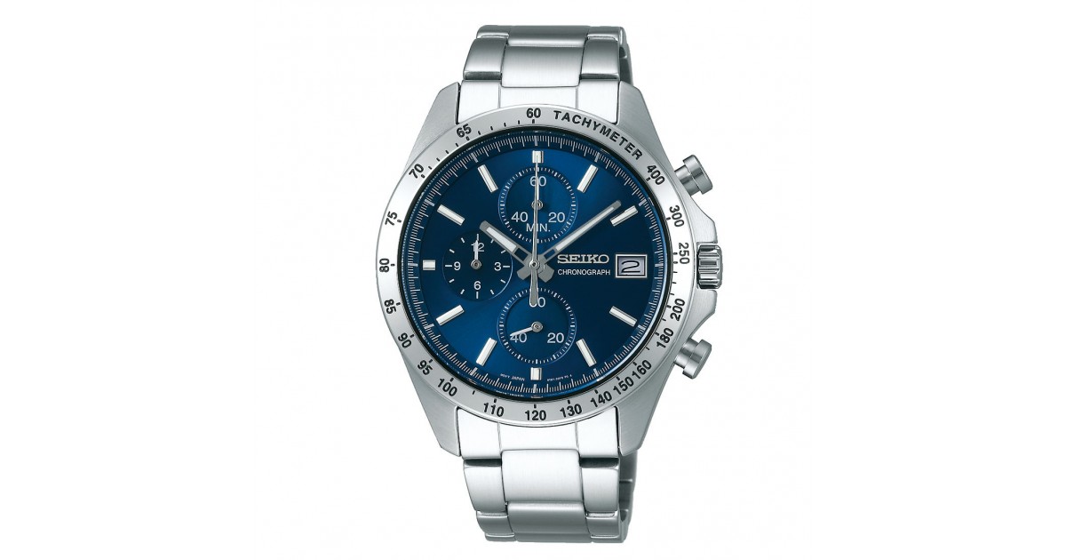 Seiko Spirit SBTR023 – men’s watch produced by Seiko. It has Japanese quartz movement and 8T67 calibre. Stainless steel case of round shape. Case dimensions are 39.8 mm. in diameter and 11.6 mm. in thickness. The dial of this Seiko watch is blue. Display type: analog. This timepiece has hardlex glass. Stainless steel band, band color: silver. 100 m. water resistance. The watch is from Spirit collection. The following features are equipped: date, chronograph, glowing hands, glowing markers.