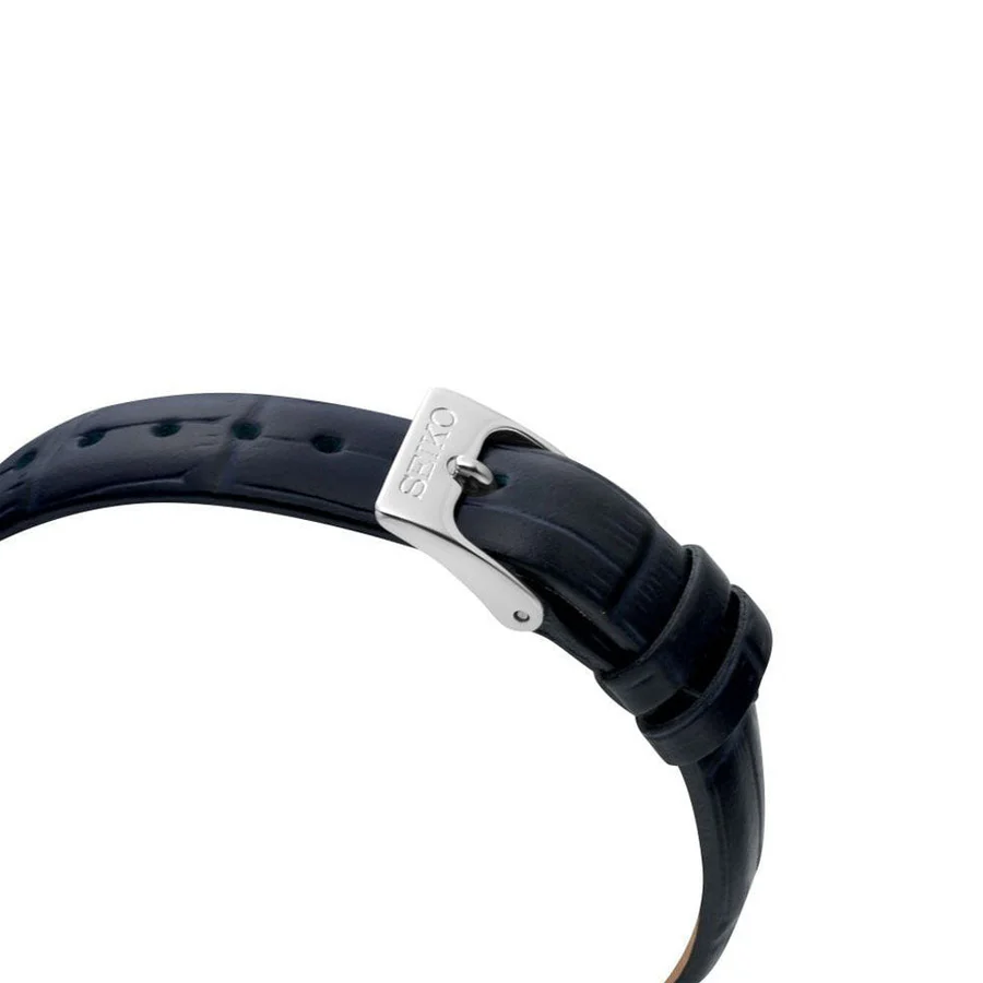 Crafted for the modern woman who values sustainability and sophistication, the SUP429P1 runs on Seiko’s solar technology, charging through natural or artificial light—no battery changes needed. Its minimalist dial, framed by a polished bezel, offers clarity and charm with every glance.