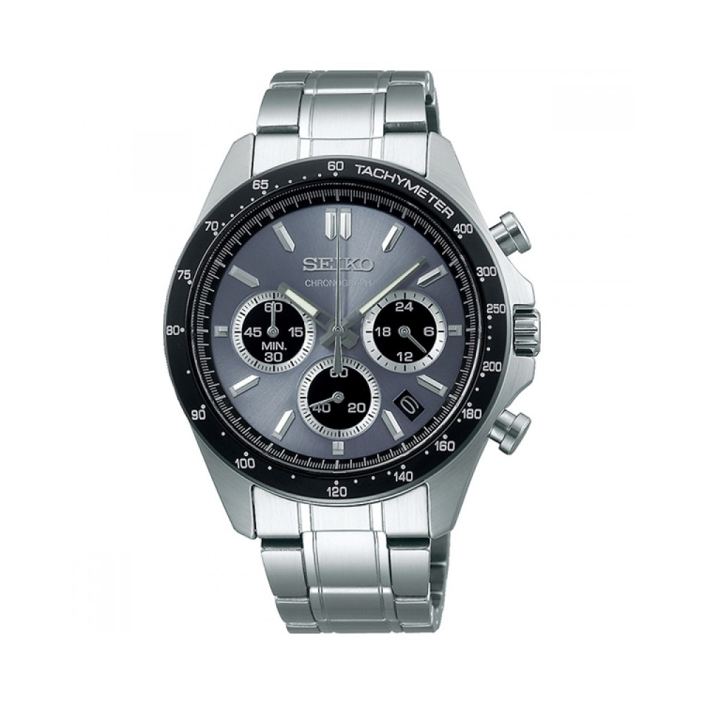Seiko Spirit SBTR027 – men’s watch manufactured by Seiko. It is equipped with Japanese quartz movement and 8T63 calibre. Stainless steel case of round shape. Case dimensions are 39.8 mm. in diameter and 11.6 mm. in thickness. The dial of this Seiko watch is gray. Display type: analog. This timepiece has hardlex glass. Stainless steel band, band color: silver. 100 m. water resistance. The watch is from Spirit collection. The following features are equipped: date, chronograph, glowing hands.
