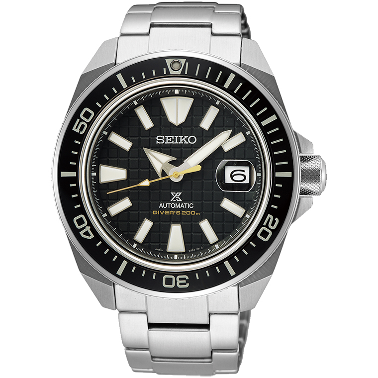 Powered by the reliable Seiko automatic Caliber 4R36 movement with manual winding capacity, this diver’s timepiece offers a 41-hour power reserve and day-date display at 3 o’clock. The unidirectional rotating bezel, screw-down crown, and 200-meter water resistance meet ISO dive standards, making it suitable for professional diving.