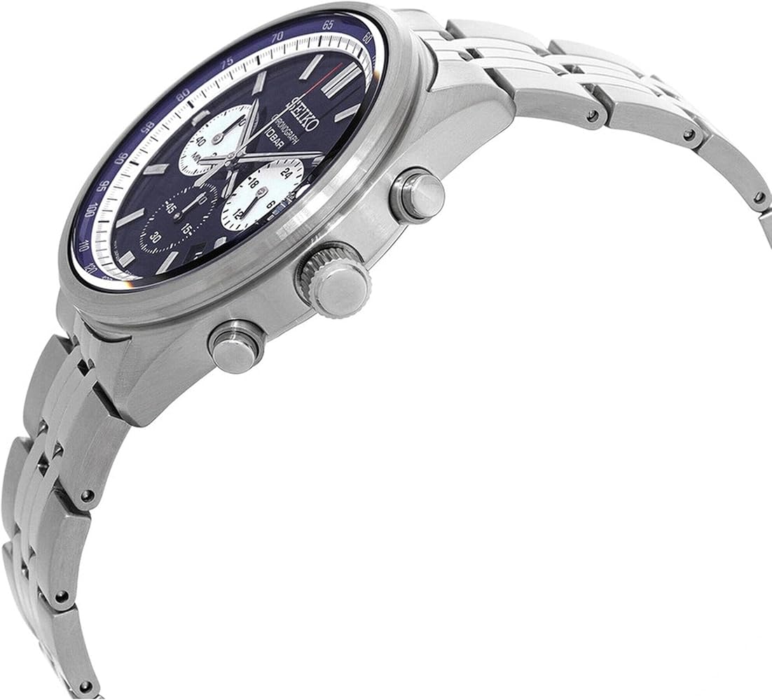 & Free ShippingThe Seiko SSB427P1 is a men’s quartz chronograph sports watch featuring a vibrant blue dial with silver subdials, reminiscent of a racecar, housed in a 41.5mm stainless steel case with a matching bracelet, offering 100m water resistance, a tachymeter bezel, and powered by the reliable Seiko 8T63 movement for stopwatch functions, date display, and 24-hour indicator, making it a durable and stylish timepiece for everyday wear.
