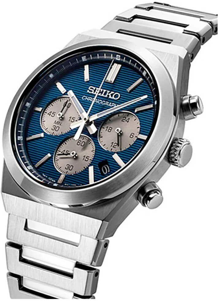 & Free ShippingThe Seiko SSB453P1 (also known as the Seiko Conceptual or Classic Chronograph) is a versatile men’s timepiece that blends a 1970s-inspired, integrated-bracelet design with modern quartz technology. It is characterized by its vibrant blue dial with horizontal stripes and 100-meter water resistance.