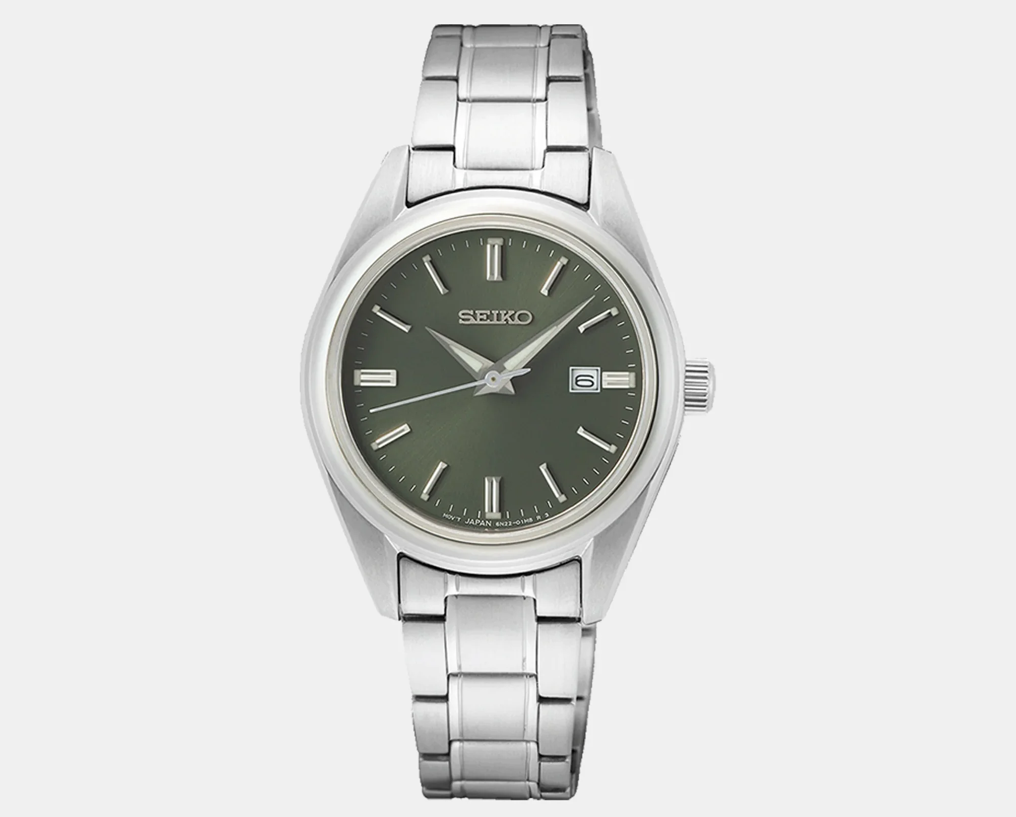Elevate your everyday elegance with the Seiko Classic SUR533P1, a stunning women’s watch that blends timeless design with a contemporary green twist. The vibrant green dial creates a unique visual appeal, standing out beautifully against the polished silver stainless steel strap.