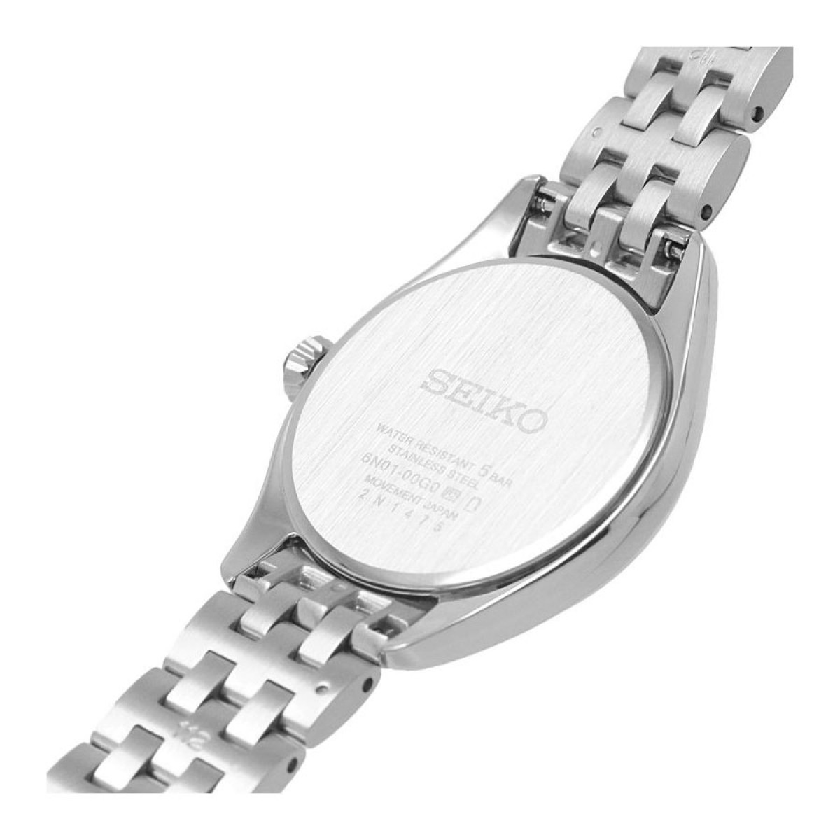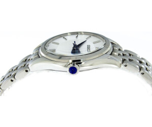 & Free ShippingThe Seiko SUR537P1 is an elegant women’s quartz watch featuring a 29mm stainless steel case and bracelet, a clean white dial with simple markers, and a reliable 6N01 movement with about a 3-year battery life, offering 5 ATM water resistance and a scratch-resistant Hardlex crystal for sophisticated, everyday wear.