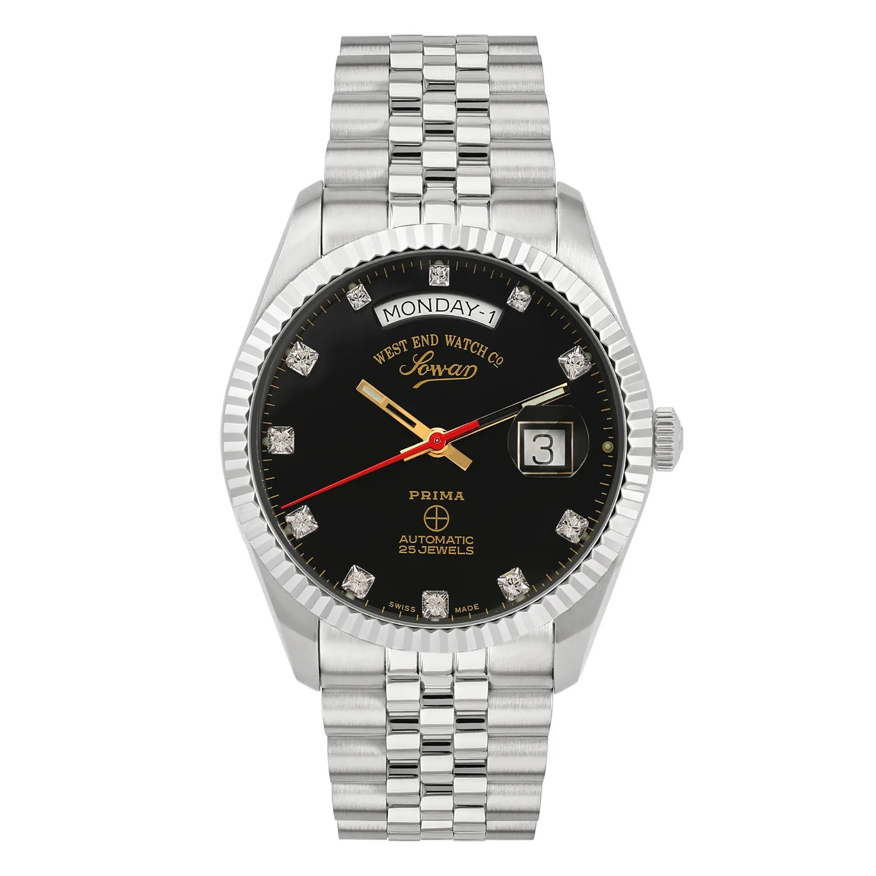 & Free ShippingWest End Watch Co. 6868_10_2900R is a refined Swiss automatic watch crafted in stainless steel with a 41 mm round case and a sleek black dial. Protected by scratch-resistant sapphire crystal, it features a reliable automatic movement and a deployment clasp for secure comfort. With 50-meter water resistance and a timeless silver bracelet, this watch blends everyday durability with classic elegance—perfect for both formal and casual wear.