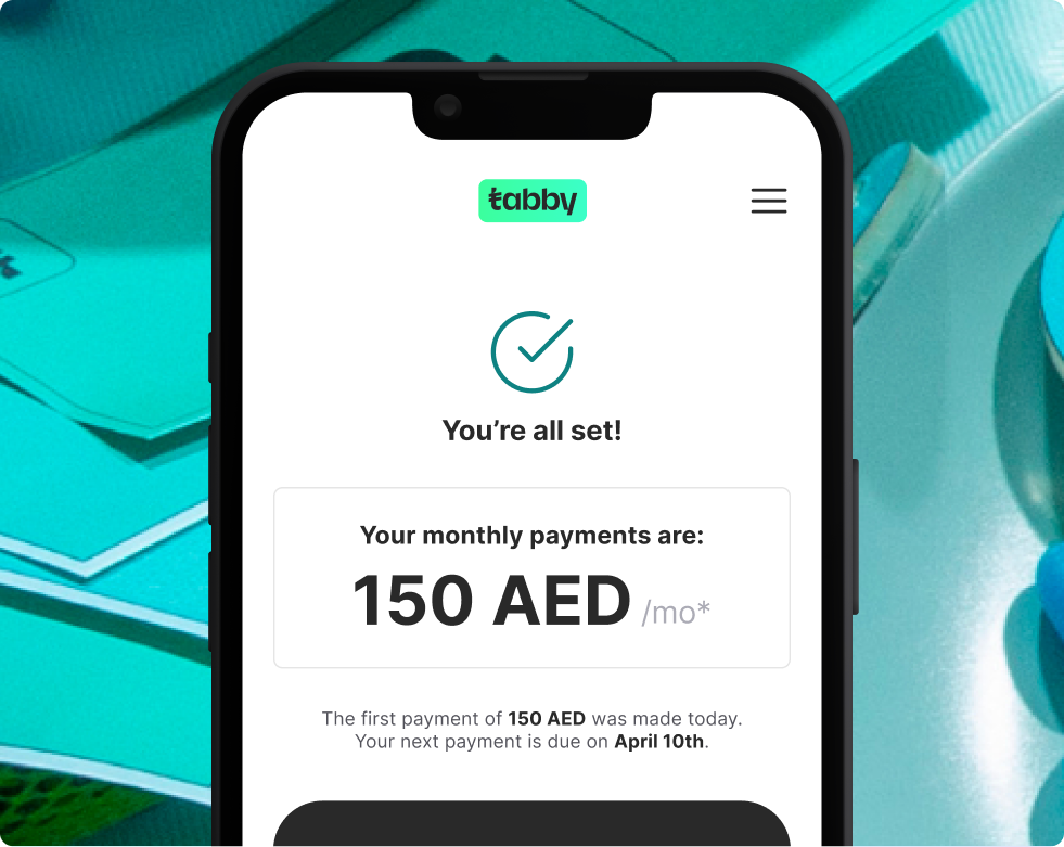 Complete checkout and tabby will remind you when it’s time to pay.
